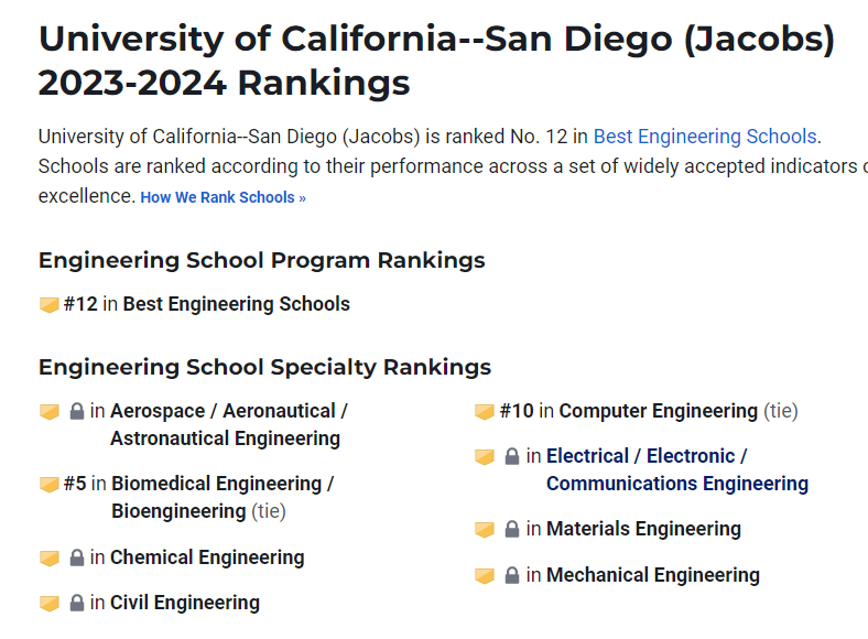 UCSD隶属UC系统,是美国顶级公立学校,最佳工程学院12位。