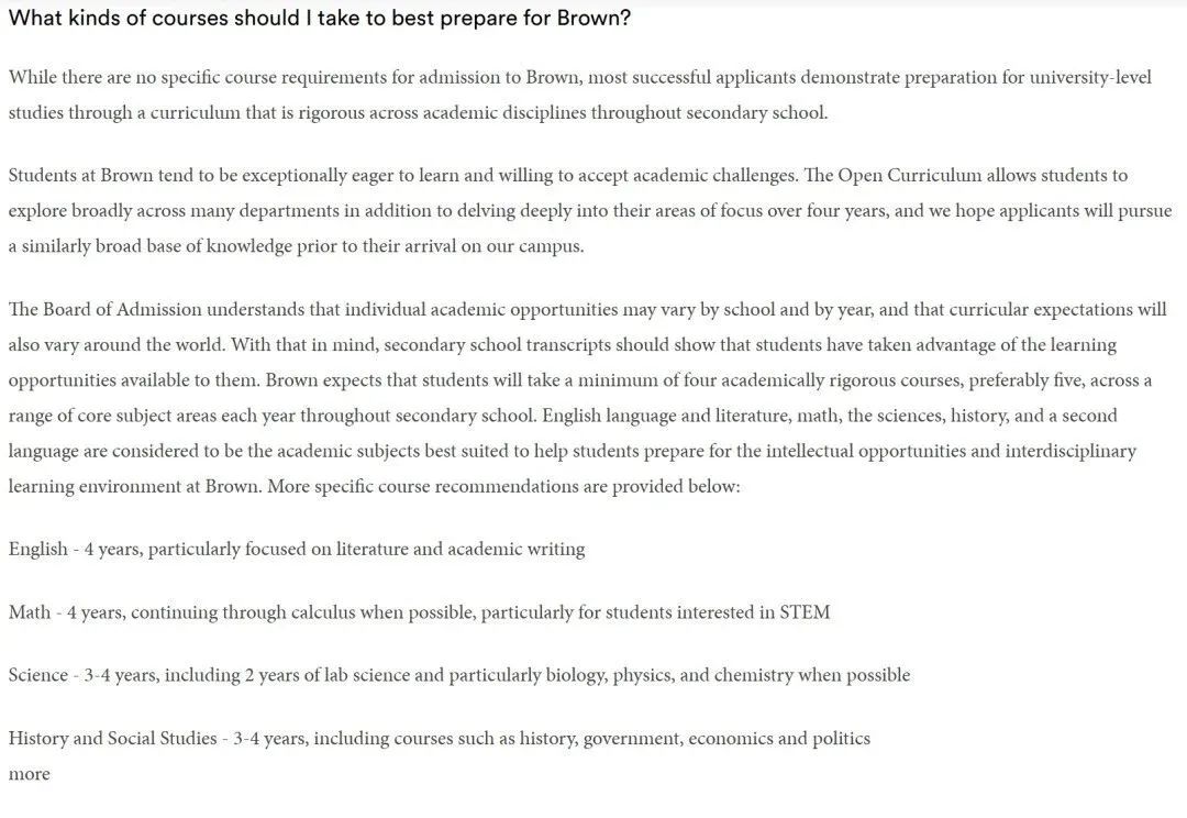 英语语言和文学,数学,科学,历史和第二语言被认为是最适合帮助学生为布朗大学的智力机会和跨学科学习环境做好准备的学术科目。