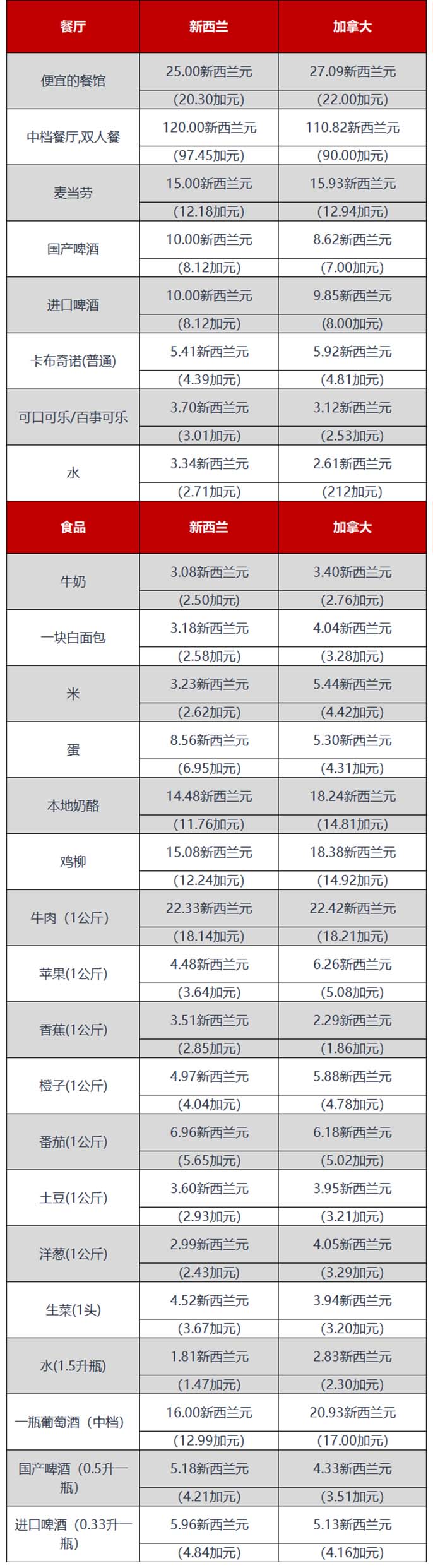 加拿大的消费价格通常只比新西兰低3%,不包括租金。而说到住房成本,加拿大的房价略高,消费者价格比新西兰高1.4%。